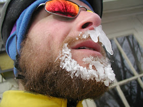 But really, depending on your outlook, cold can be a good thing, or at the very least interesting. I've experienced beard condensation icicles before, but today was truly special. Unfortunately, a camera wasn't on hand early enough to capture the first coating which had individual hairs looking like strands of spaghetti squash; old man winter didn't have a think on me. Still, the nostril stalactites were my best effort yet and survived for your viewing displeasure.