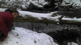 Winter is also a nice time to go hiking. We saw these very curious looking icicles hanging off a log. The icicles look a bit like bell ringers or candles being dipped. Anybody ever seen icicles like this before?