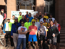 On Colin's show one of the conversation topics was Bike to Work, since National Bike to Work day was the next day. I rode over to East Hartford early this morning to water my community garden plot and plant some squash. After that I met up with a group a P&W employees from Glastonbury that were riding to the Hartford BTW breakfast. More than 200 bike commuters of all shapes, sizes, and configurations mobbed the plaza of the Old State House, spilling over into the lawn. Excitingly the event has become a draw for those that want to be seen and green, such as Mayor Segarra (in a neon public safety jacket) and James Redeker, the CT DOT commissioner. Hartford is gearing up to create a Parks and Open Space plan that includes bike route connections between their large and under-utilized parks and green spaces. It smells like a Bike Plan under the guise of the Parks and Recreation department. As I find out more, will let you know.
