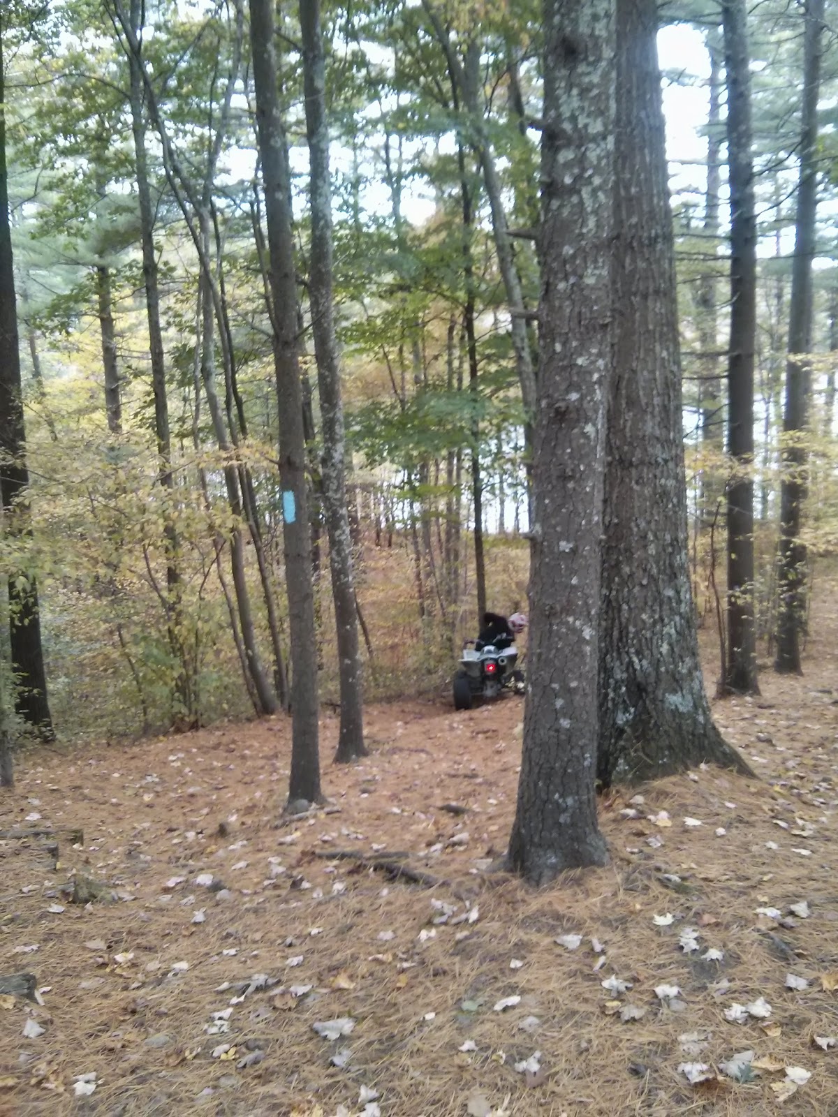 Oh, I took a picture of this guy who crashed his ATV into a tree and got it stuck at Mansfield Hollow State Park yesterday. Schadenfreude!