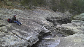 You wouldn't expect there to be massive cliffs, sandstone canyons, and mountain lions in Illinois.  I can confirm the first two, and the third is a maybe based on the eviscerated deer we stumbled upon while free-hiking in the Shawnee National Forest.  Valerie and I spent a couple of days hiking and winter camping over the holiday week.  It was awesome.  No one was there.  It might have been the frigid temperatures that resulted in our private camping and hiking experiences.  On night two of camping, I awoke with frozen condensation on my sleeping bag.  First rule of having fun - nobody died.
