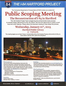 VERY IMPORTANT - In advocacy news, your attendance and public comment is desperately needed on Wednesday, January 21st. The informational and public comment meeting is conveniently located at the Hartford Public Library with an open house (general chatting and looking at maps) starting at 3PM. The presentation starts at 5:30PM. Want to fill seats with cyclists (bring your helmets inside), walkers, and transit users. Very important to look at this project as an opportunity to stitch our community and neighborhoods back together. The CT DOT now has an adopted Complete Streets policy. Let's make sure the I-84 plans are safe for all road users, particularly where the entrance and exit ramps hit neighborhood streets. More information at www.I84hartford.com.