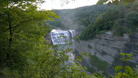 The greenway was relaxing, but physically more strenuous due to the trail surface, sometimes just a grassy path. The going was slow for my ~75 miles of riding and it was evening before I reached Letchworth State Park. It was worth the trip. The Grand Canyon of the East, belied by the tall layered cliffs. I came into the park via a rough and rocky gravel road, and found water, bathrooms (with showers!), and cabins. The park office and tent camping was nowhere to be seen, so I cleaned up with a shower and followed the Greenway to it's terminus overlooking a massive waterfall. One of the best camp spots yet.