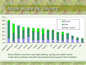 With vision, and buy in, very significant changes have happened before. In 1973 the Netherlands banned cars on Sundays. The ban was due to the oil embargo and only lasted a couple of months, but they never looked back. The alternative mode share in the Netherlands that exceeds 50% leads to a much more pleasant and human scale built environment. Everyone that visits the Netherlands comes back changed, and asking questions. Why can't the US (the really sad bar on the far right) move away from single occupancy vehicle travel? In Hartford we can't change the entire country, but we can effect local change. The urban centers are leading the way because we have the most to gain economically from moving to a greater share of transit, biking, and walking.