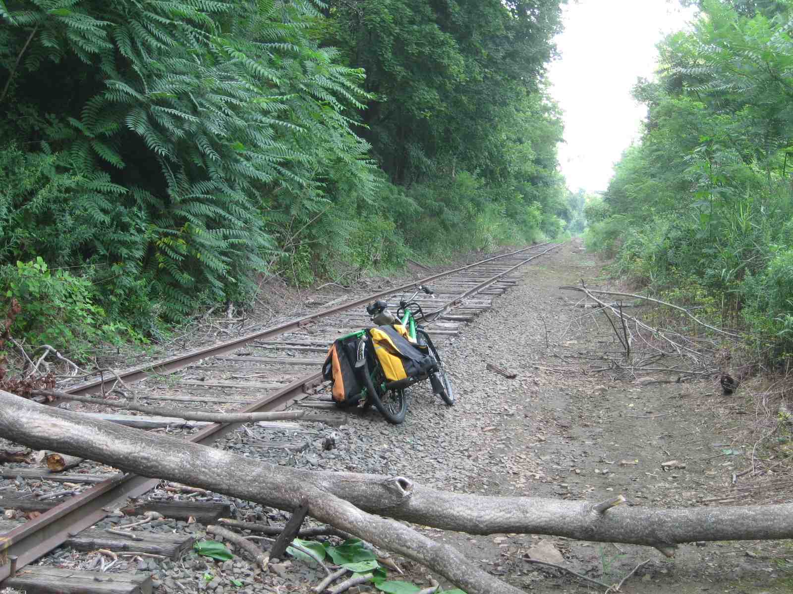 Back on the west bank, I hopped on the abandoned rail line near the Rocky Hill ferry landing and rode north into Wethersfield. There was more natural and man-made debris in the way than I recalled from the last day I spent along this stretch of track, but it wasn't that bad. With late-afternoon temps still holding in the 90's, the added effort of riding the traprock and rotted, uneven ties of the tracks made quick work of draining my on-board water reserves. I left the tracks in Old Wethersfield, where an impromptu visit with nearby friends provided snacks, water bottle refills and good conversation in front of a blessed electric fan. As dusk fell, I pedaled off refreshed, making my relaxed way through Wethersfield and the South End to home and a refreshing shower. It was a very fine day.