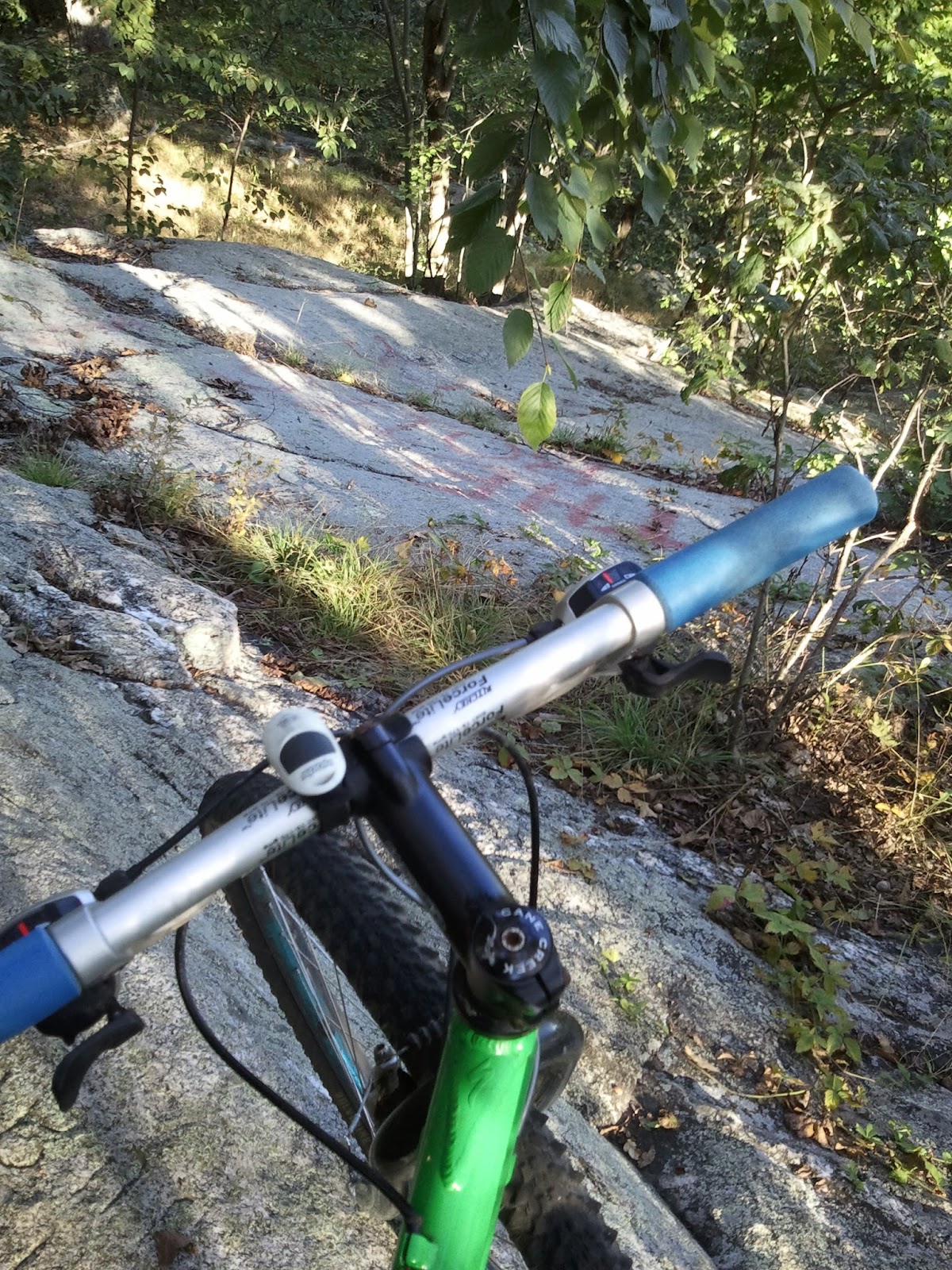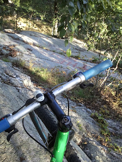 Sorry. Our blog is usually lacking in terrible humor (always lacking in good humor). Anyway, I took the ferry over to the Meshomasic State Forest the other day and went mountain biking. It was very enjoyable. I was thinking, while going down some rocky, washed out descent (as they are there), I'm not crashing and generally out of control like I have been lately. I realized that it's probably because my tires are about an inch wider than they are on my 'cross bike. It's realizations like this that make people think I'm not too bright and they're totally correct.